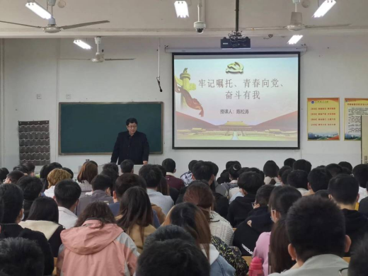 (通讯员:丁晓蕾)3月22日下午,为深入学习贯彻习近平总书记在党史学习教育动员大会上的讲话精神,做好新形势下大学生思想教育工作,按照校党委统一部署,副校长陈松涛教授在九号楼B座402教室,为yl23411永利集团师生讲授“形势与政策”暨春季开学第一课。yl23411永利集团全体辅导员及学生代表150余人共同聆听了此次课程。