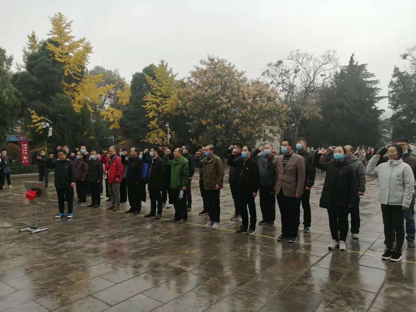 在焦裕禄烈士陵墓前,大家集体三鞠躬并绕陵墓一周向烈士墓行注目礼。面对鲜红的党旗下,大家重温了入党誓词。