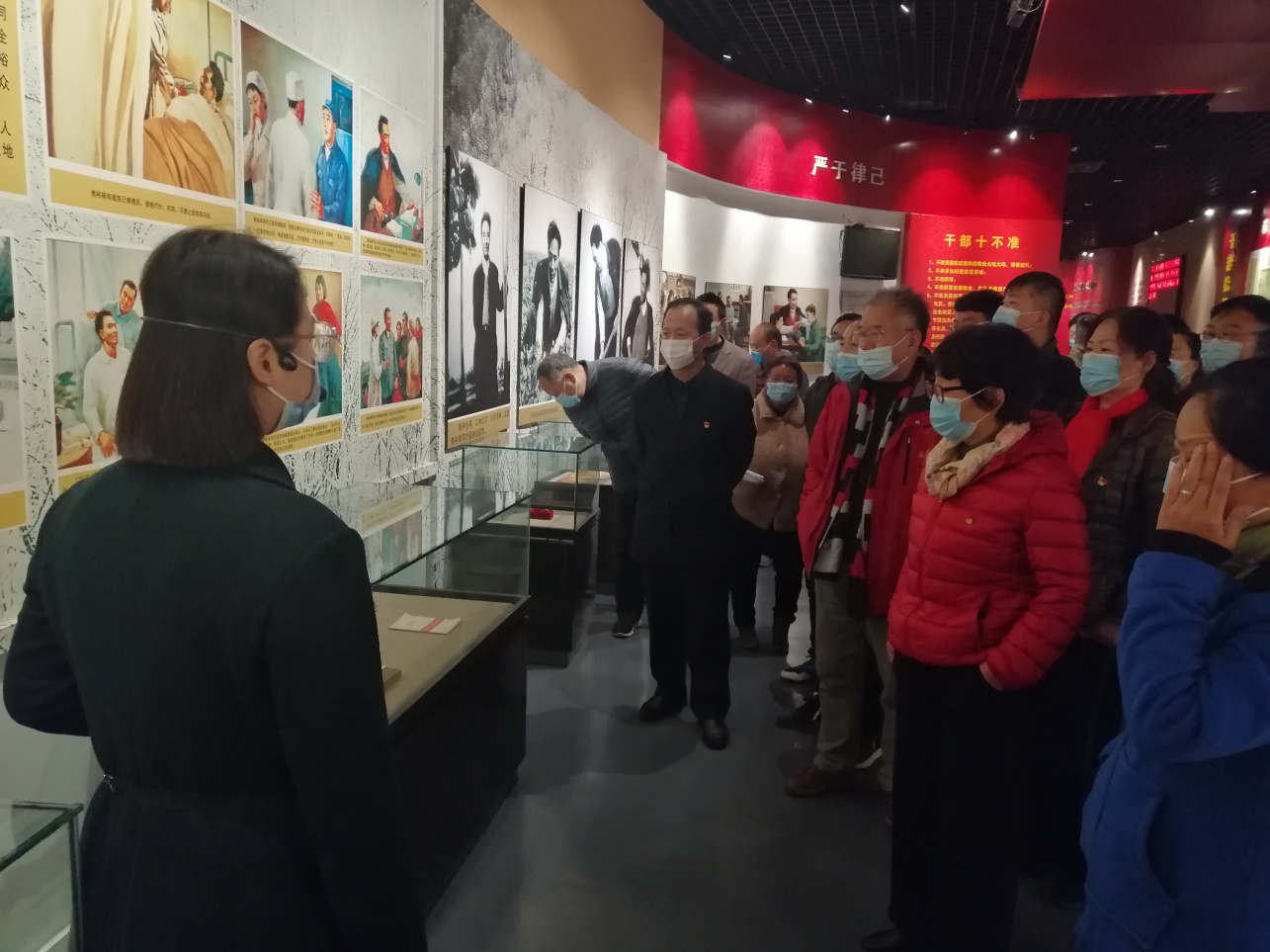 在焦裕禄同志纪念馆,通过讲解员深情的讲解,透过那一幅幅焦裕禄同志曾经工作过的画面,把大家的思绪仿佛又带到了几十年前焦裕禄同志工作的时空,大家仿佛又看见了焦裕禄同志那瘦小而又坚韧的身影,他带领着干部群众冒着严寒,顶着风沙,同恶劣的自然环境作斗争。当讲解员讲到焦裕禄同志忍受着疾病的折磨,仍然坚持工作,直到献出自己的宝贵生命时,她的声音变得哽咽,眼泪充满了眼眶。虽然几十年过去了,但是焦裕禄精神依然感动着我们。
