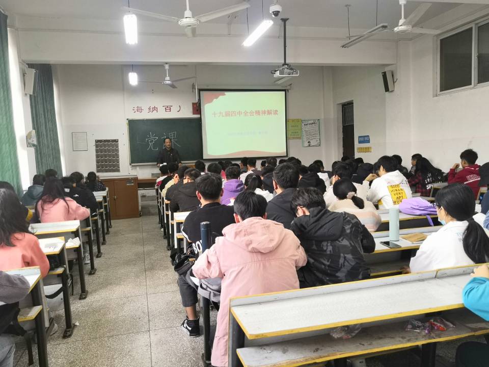 (通讯员:丁晓蕾)11月11日下午,yl23411永利集团党总支书记曹恒慧在9号楼411教室以“十九届四中全会精神解读”为题为我院学生讲授了一堂思想政治课。