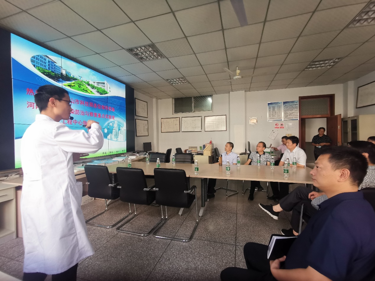 (通讯员:王乐)8月18日上午,市科技局局长赵会杰一行来我院河南省水体污染防治与修复重点实验室调研指导工作,副校长陈松涛、科研处处长毛艳丽、重点实验室骨干成员陪同。