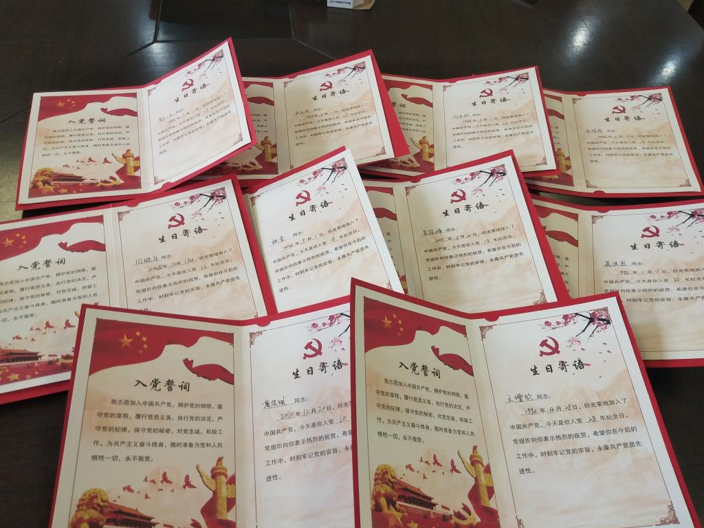 主题党日活动中,全体党员一起重温入党誓词;支部为党员发放政治生日贺卡,集体过“政治生日”;并以“迎党的生日、讲战疫故事、悟初心使命”为主要内容,进行了深刻的研讨和交流。最后,所有党员观看了红色影视《建党伟业》,重温了党的光辉历史和奋斗历程。