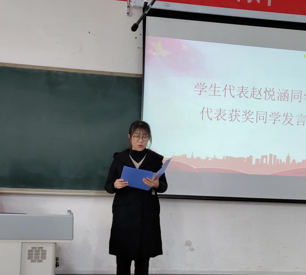 仪式最后,由获奖学生代表获得者赵悦涵进行发言,表达了对沁润泽环保科技有限公司与领导老师的感谢,也表示在以后的学习生活中,会再接再厉,继续努力奋斗。