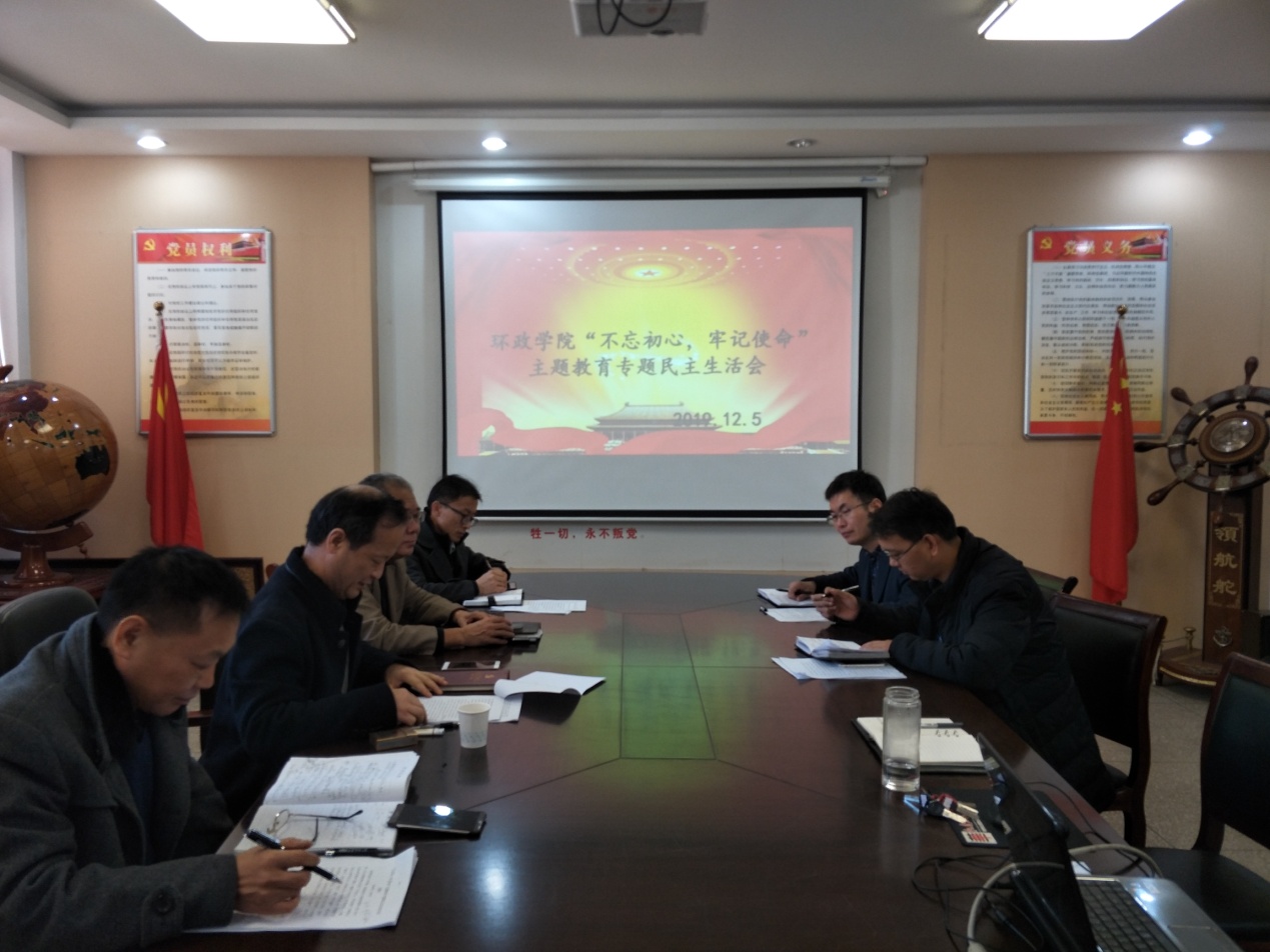 (通讯员 冯兴华)根据学校“不忘初心、牢记使命”主题教育工作领导小组安排部署,12月5日上午,环政学院在9A313会议室组织召开“不忘初心、牢记使命”主题教育专题民主生活会。学院班子成员参加会议。会议由学院党总支书记曹恒慧主持。