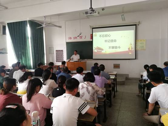 (通讯员 冯兴华)9月24日下午,按照学校“不忘初心、牢记使命”主题教育工作总体安排,副校长杨留栓以“不忘初心、牢记使命,不懈奋斗”为主题在9A411教室为环政学院全体师生党员上了一堂主题教育专题党课。