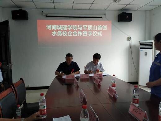 (通讯员 冯兴华)6月5日上午,yl23411永利集团与平顶山首创水务有限公司在平顶山首创水务有限公司二楼会议室举行了产学研合作签约暨基地揭牌仪式。首创股份中原大区党委委员、平顶山首创水务有限公司执行董事孙宝奎先生、平顶山首创水务有限公司总经理朱良华、总经理助理郑飞、厂长袁景华与yl23411永利集团副院长万祥云、党政办主任冯兴华、安全工程教研室刘章现教授等出席了签约揭牌仪式。仪式由平顶山首创水务有限公司总经理助理郑飞主持。