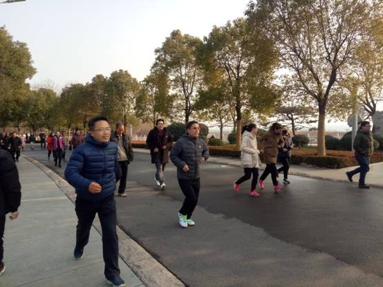 本次活动起点为林下广场,终点为观景台,全程往返大约6公里。一路上,大家有说有笑,昂首阔步,疾步向前。虽然室外寒意料峭,但大家精神焕发,奋勇争先,脸上洋溢着我运动我快乐的喜悦。