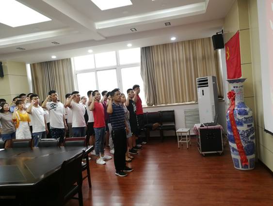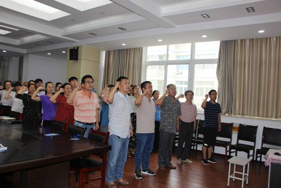 总支书记马宁奇带领全体教工党员重温入党誓词