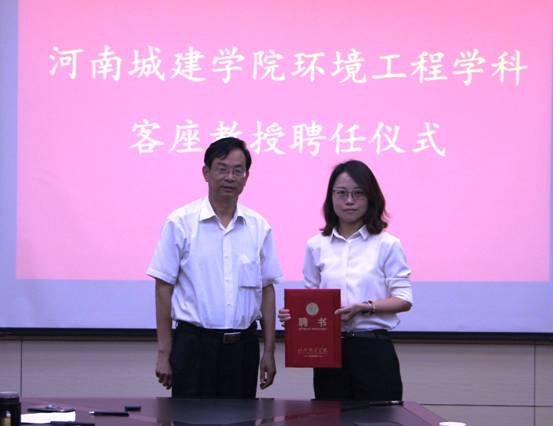 (通讯员 姜忠峰 刘盼)6月25日上午,江苏大学教授、博士生导师王赟受聘我校环境工程学科客座教授仪式在yl23411永利集团会议室举行。副校长杨风岭教授出席仪式并向王赟教授颁发聘书。我校教师发展中心主任高成全、人事处规划发展部主任郑化浦,河南省城市规划设计研究总院有限公司副总工尚学军教授级高级工程师、郑州大学博士生导师高健磊教授,yl23411永利集团领导班子成员及部分教师代表参加聘任仪式。仪式由教师发展中心主任高成全主持。