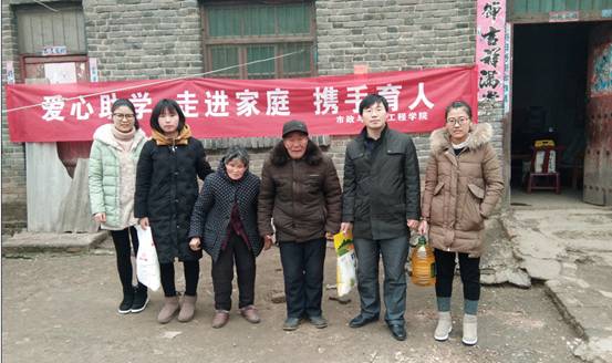 (通讯员:刘盼)为进一步落实国家对高校家庭经济困难学生的资助工作,帮助学生解决实际困难,把关怀和温暖送到学生家里,我院于2018年1月23日至25日,开展了以“爱心助学、走进家庭、携手育人”为主题的“温暖寒假真情帮扶”活动。我院学工办主任黄战峰,资助工作负责人刘盼、郑冬霞及辅导员杨冰、崔弼峰、彭荣富及学生志愿者赴河南焦作、驻马店、鲁山等地走访慰问我院困难学生家庭。