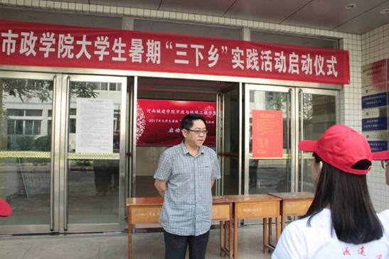 (通讯员:黄战峰,黄梦楠)6月29日上午,我院大学生暑期“三下乡”社会实践活动启动仪式在9号楼一楼大厅举行。市政学院党总支书记陈松涛、总支副书记朱泮民、副院长田长勋、团总支书记黄战峰、郑冬霞等辅导员老师及全体“三下乡”成员参加了启动仪式。仪式由团总支书记黄战峰老师主持。