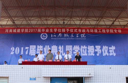 下午2点半,毕业典礼在庄严的国歌声中拉开帷幕。首先对我院省级、校级优秀毕业生代表进行表彰,副院长毛艳丽教授宣读市政学院2017届获得学士学位毕业生名单,学生代表、教师代表进行了发言,院长郭一飞做了讲话,然后副校长杨留栓做了重要讲话,对毕业生们提出来殷切期望,并鼓励他们以饱满的热情和昂扬的斗志投身社会,服务社会,实现价值;最后进行拨穗正冠仪式,全体毕业生着装整齐,一一上台,校领导为每个学子拨正流苏、颁发证书并合影留念。学位授予仪式结束后,典礼在大家的热烈掌声中落下了帷幕。
