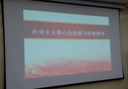 会上党总支书记陈松涛对社会主义核心价值观进行解读,使得全体师生对于社会主义核心价值观有了全面的了解。并做了“社会主义核心价值观与师德修养”专题讲座。