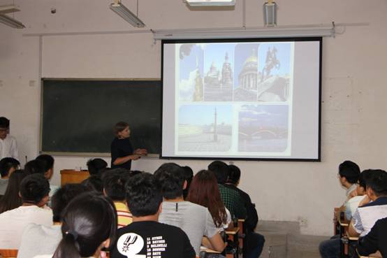 斯韦特兰娜女士首先向师生介绍了圣彼得堡市的历史以及城市发展现状,圣彼得堡国立建筑工程大学的基本情况。然后为2015级给排水科学与工程专业中外合作办学班级讲授了《工程制图》。