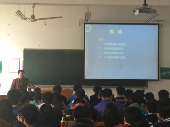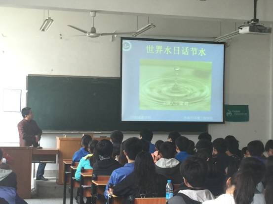 下午2点,讲会正式开始。梁峰老师首先进行了自我介绍,随后介绍了从第一个世界水日到现在2016年每一年世界水日的主题,使同学们更加了解世界水日的由来。接着梁峰老师讲解了我国水资源余量及分布概况等知识,并从人类日常生活、工作、学习等方面充分强调了水的重要性,更说明了2016年世界水日的主题——水与就业,详细地向同学们说明了2016年有关水资源专业就业的问题。这次讲会上同学们认真听讲,及时做好笔记。讲会进入到最后的阶段,梁峰老师总结此次讲解,重复强调了今天的主题“水与就业”,为本次世界水日主题讲座画上了一个圆满的句号。
