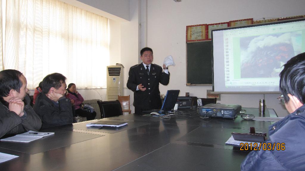 河南省武警消防总队的曲教员对电器、车辆、家庭火灾的预防与处理等消防安全常识进行了详细讲解。并就查改火灾、发现火灾隐患、扑救初期火灾、组织人员疏散、自我逃生以及如何使用消防器材、逃生工具进行了深入浅出的说明。讲座中,曲教员利用视频和图片资料,结合近年来发生的火灾案例,讲述了提高消防安全意识、有效预防火灾发生的重要意义。而后对教职工提出的生活中常见的消防安全方面的疑难问题进行了耐心地解答。广大教职工积极要求拷贝讲座课件,以便进一步自我学习并向学生们讲解。