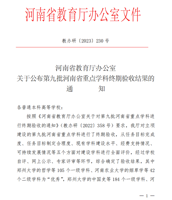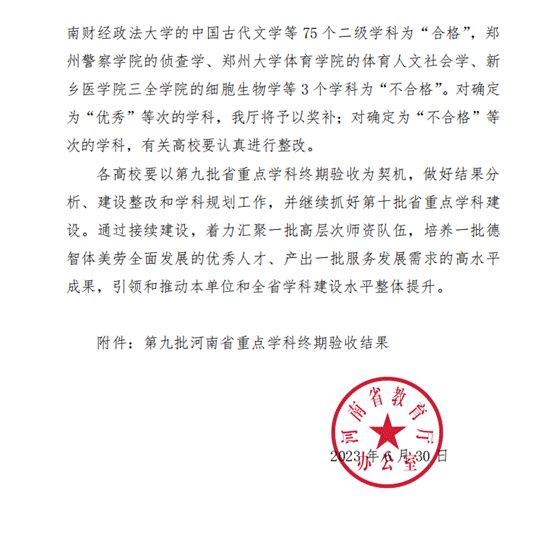 近日,河南省教育厅公布了第九批河南省重点学科终期验收结果。我院以副校长陈松涛教授为学科带头人的市政工程河南省重点学科以优秀成绩通过终期验收。