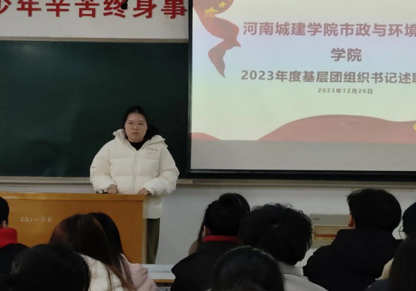 为深入贯彻落实团中央《关于印发〈基层团组织书记述职评议考核暂行办法〉的通知》精神和全面从严治团的要求,最大限度地发掘能力突出、素质过硬、充满活力的基层团支部和团干部。根据校团委和环政学院党委工作安排部署,12月26日下午,我院在9号楼A406教室召开2023年度基层团组织书记述职评议会。我院团学办全体辅导员以及各班团支书参加此次会议。