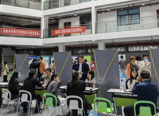 本次双选会共邀请了北京燕华工程建设有限公司、河南海德检测服务有限公司、河南鄯茵水务科技有限公司、开沃新能源汽车集团股份有限公司等省内外28家企业,提供了涵盖环境、市政、安全、化工、生物等领域200余个岗位。据统计,现场共吸引了300余名2024届毕业生前来求职应聘。我院大二、大三年级学生也来到招聘会现场,主动了解专业就业类型和岗位要求,为提前规划就业方向做准备。