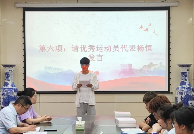 运动员代表杨恒、鲁丰恺分享了他们的心得与体会,努力与汗水,快乐与收获,并承诺将会再接再厉、不断进取,做好模范带头作用。