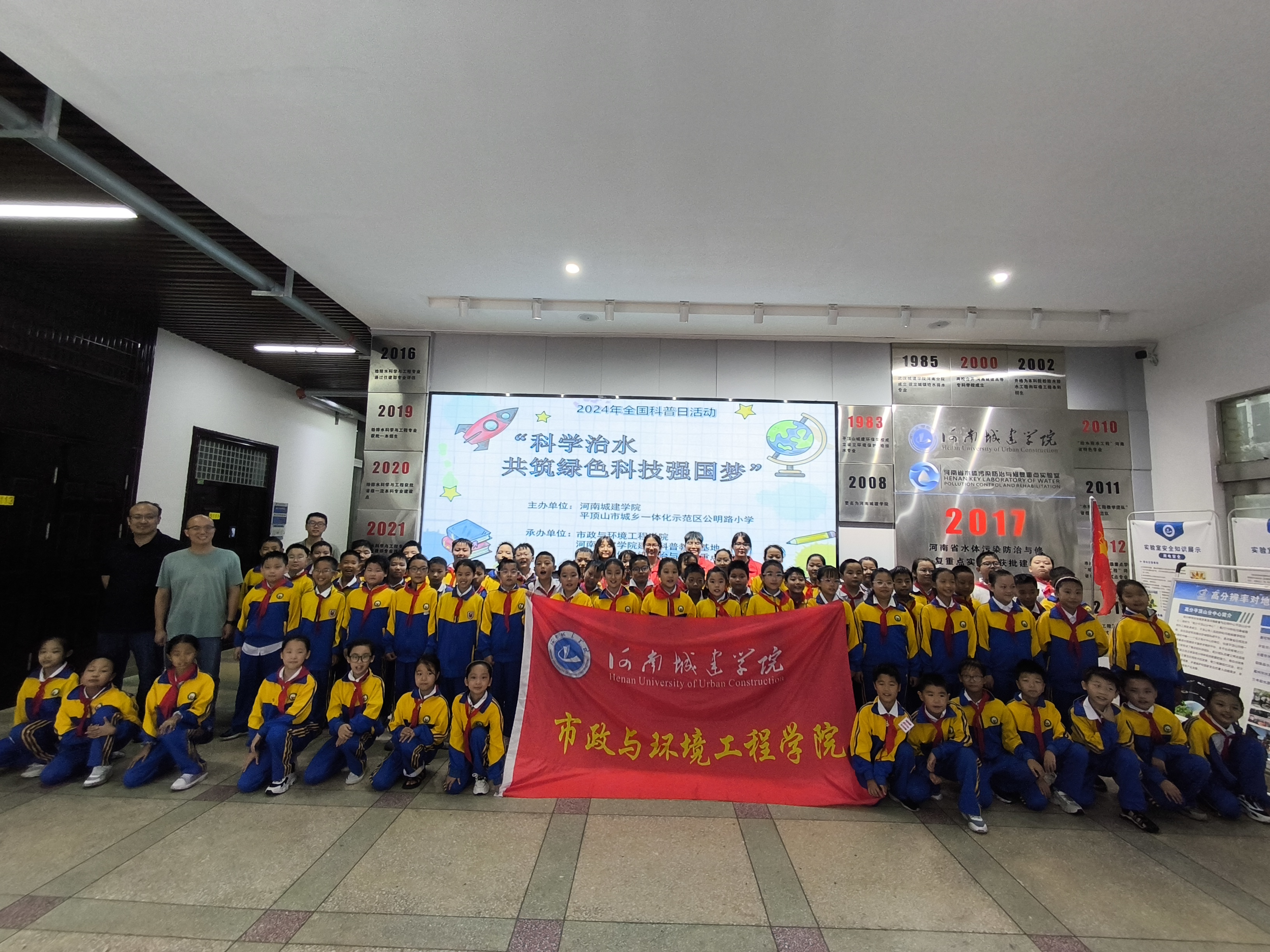 水是地球赖以生存和发展的珍贵资源,为了让更多孩子培养保护水环境、减少水污染以及安全用水的意识,更好地了解如何科学治水、科学用水。9月19日,以“科学治水,共筑绿色科技强国梦”为主题的科普活动在yl23411永利集团举行。本次活动由永利yl23411集团、平顶山市城乡一体化示范区公明路小学主办,永利yl23411集团建筑科普教育基地、yl23411永利集团、河南省水体污染防治与修复重点实验室共同承办。
