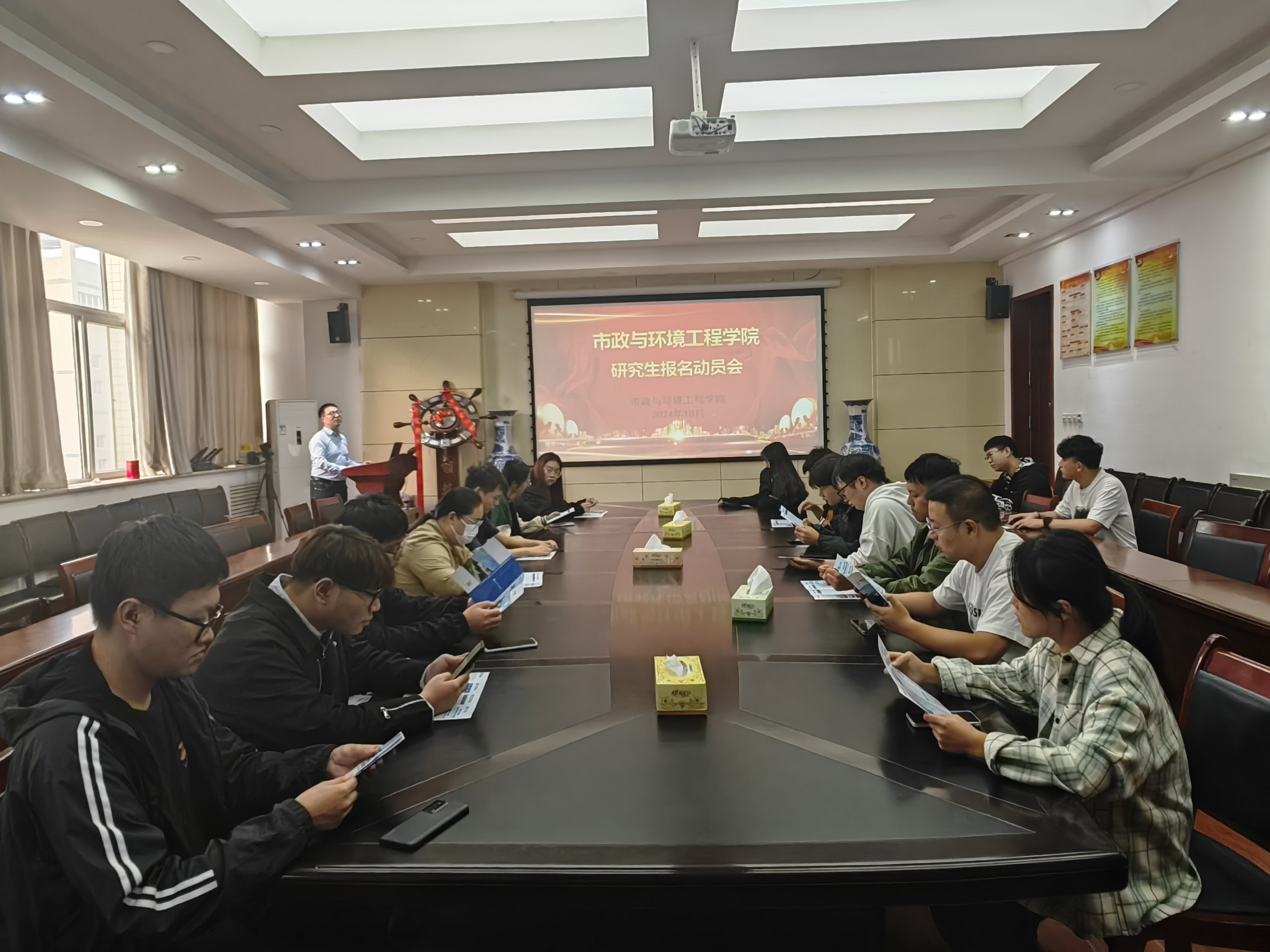 为进一步宣传我院研究生教育特色和招生政策,满足同学们对我院研究生招生咨询的需求,广纳我院优秀学子进一步深造,9月8日下午,我院在9号教学楼315会议室召开了研究生报名动员会。我院20余名学生参加了动员会,副院长王超海作研究生招生宣讲和报名动员。