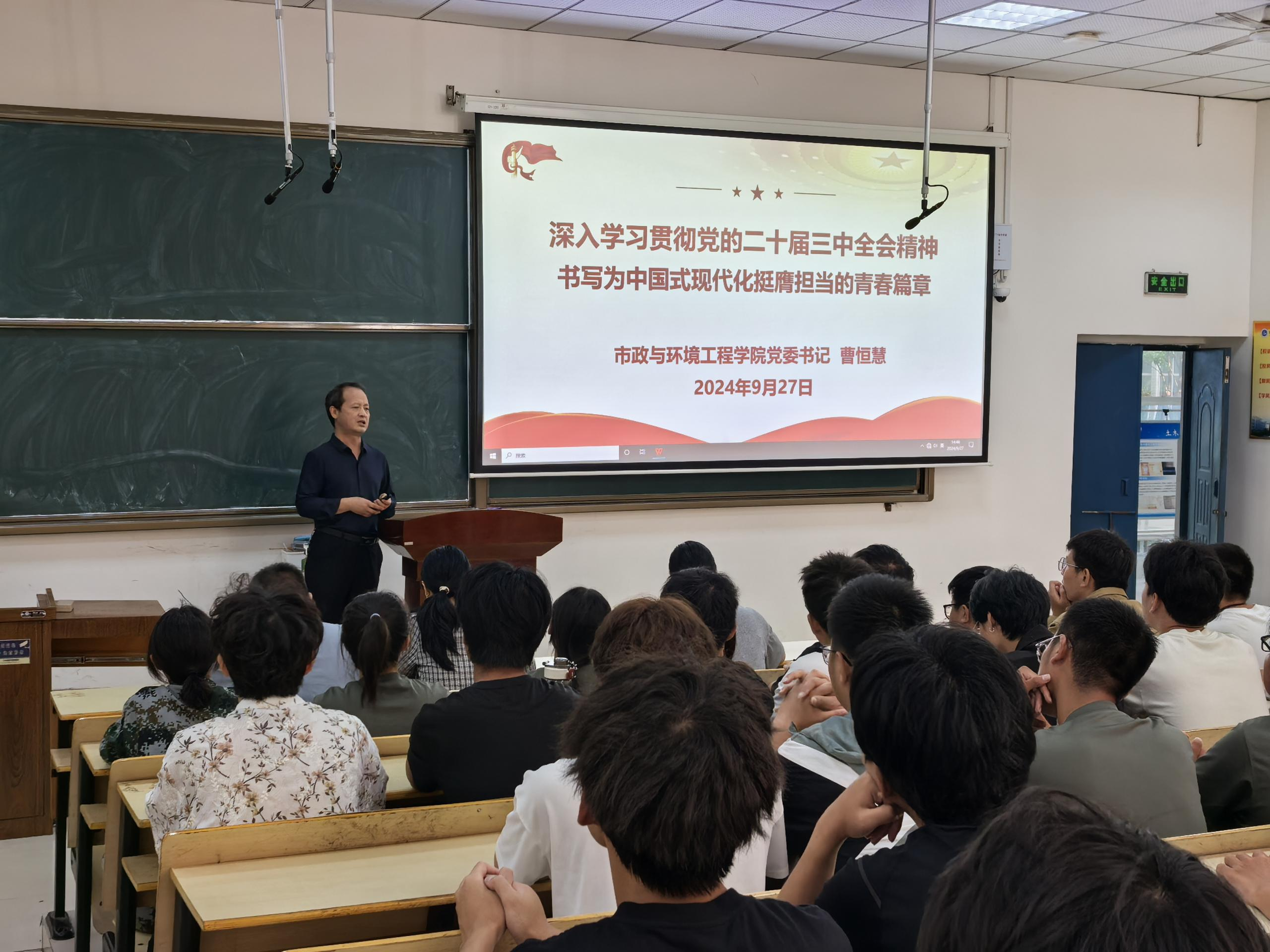 课上,曹恒慧以深刻认识党的二十届三中全会的重大意义,深刻领会习近平总书记关于全面深化改革的一系列新思想、新观点、新论断,全面准确把握《决定》提出的进一步全面深化改革重大举措,以“主人翁”姿态写好属于青年一代的时代答卷为主线,作了一场理论和实践相结合的生动报告。他激励同学们深入体悟其精髓,不断强化自身作为,勇担使命,用自强与创新的思想武装自己,为国家和学校的繁荣发展贡献自己的力量。