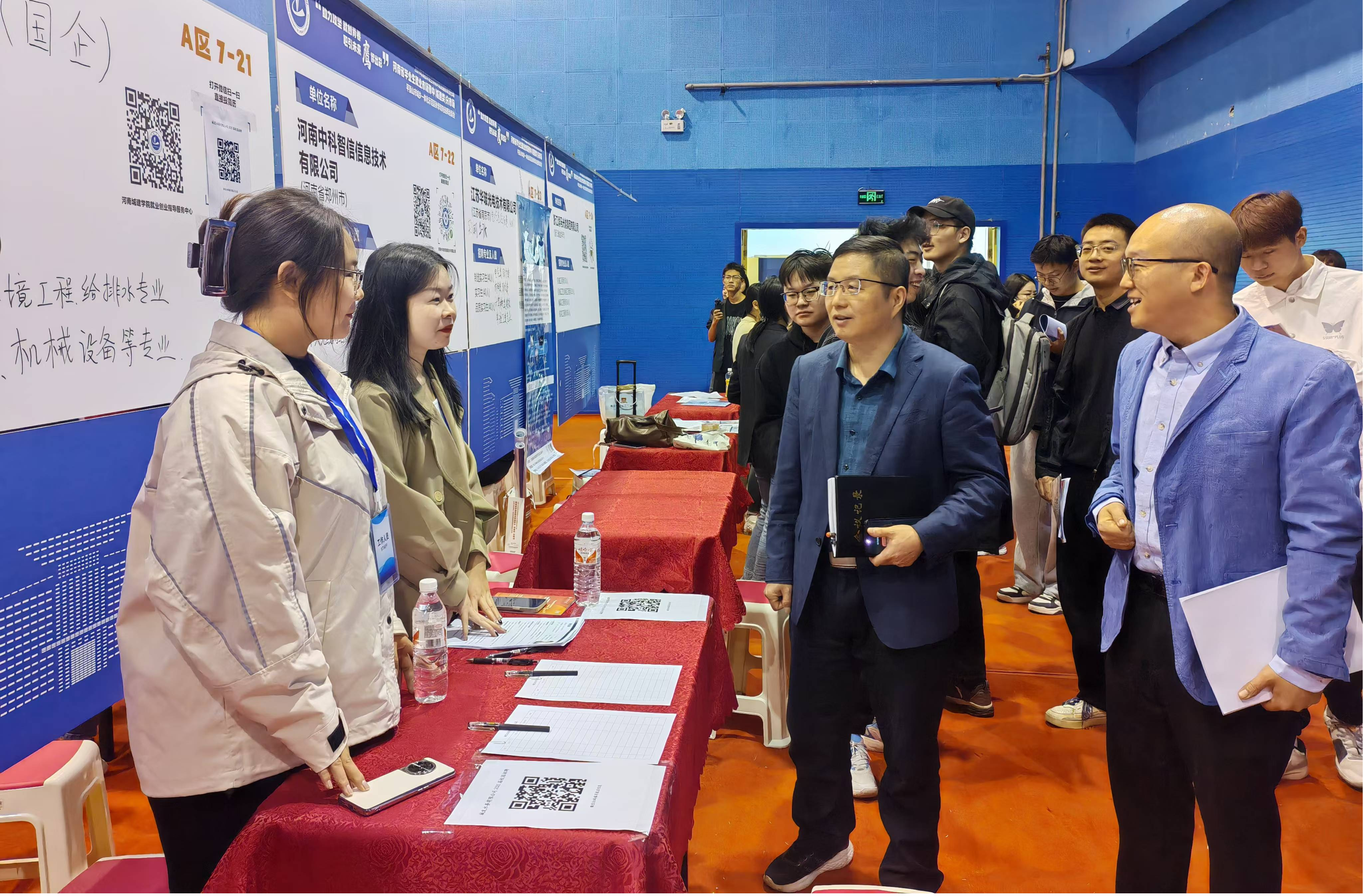 10月25日,河南省毕业生就业市场豫中(城建类)分市场2024年秋季双向选择洽谈会在我校体育馆成功举办。yl23411永利集团高度重视,提前进行了广泛的宣传和动员,积极组织毕业生参加双选会。院长姜忠峰、副院长宋忠贤深入校园招聘会现场,了解相关企业需求和招聘情况。