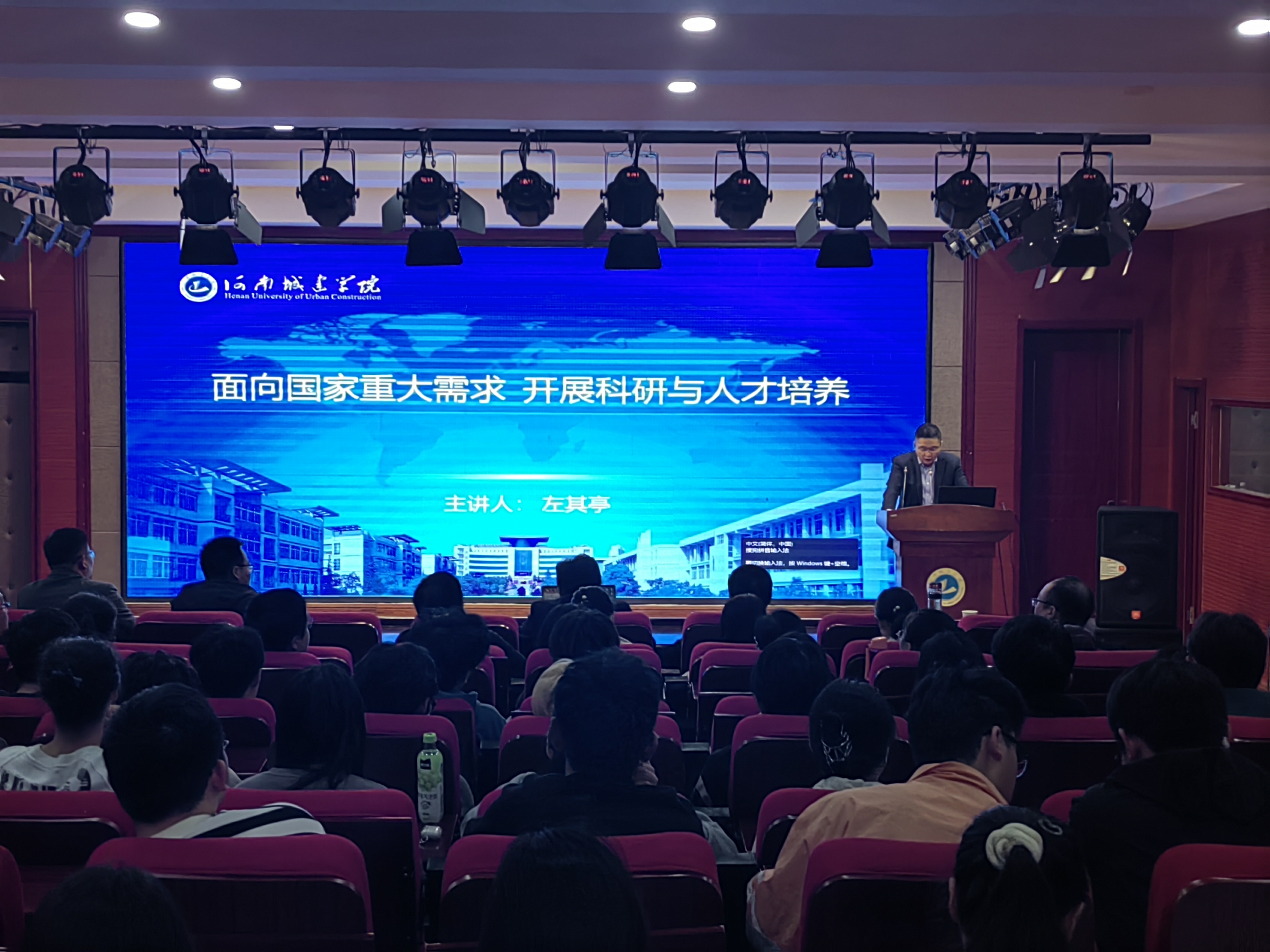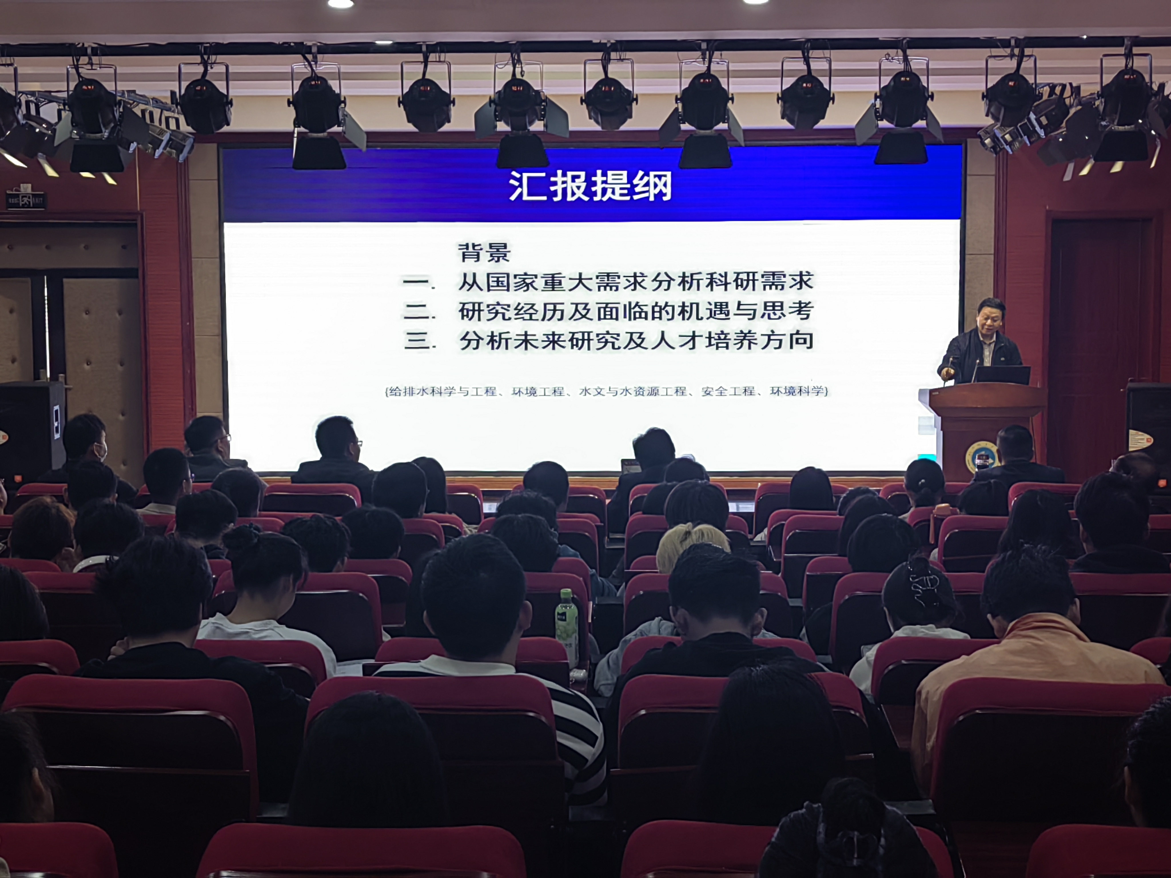 首先,姜忠峰代表学院对左其亭教授一行表示热烈欢迎,随后,左其亭教授以《面向国家重大需求开展科研与人才培养》为题做主题报告。左其亭教授从宏观角度介绍了十八大到二十大我国面临的重要发展机遇,结合黄河流域高质量发展、“一带一路”、“双碳”目标等国家战略布局看科技需求,阐述了在新质生产力背景下,如何将专业、学科、教学与当前形势相适应,并针对国家自然科学基金等科研选题进行了深入剖析,鼓励年轻教师和研究生要立足国家战略需求,拓宽研究思路,找准方向,把文章写在祖国的大地上。