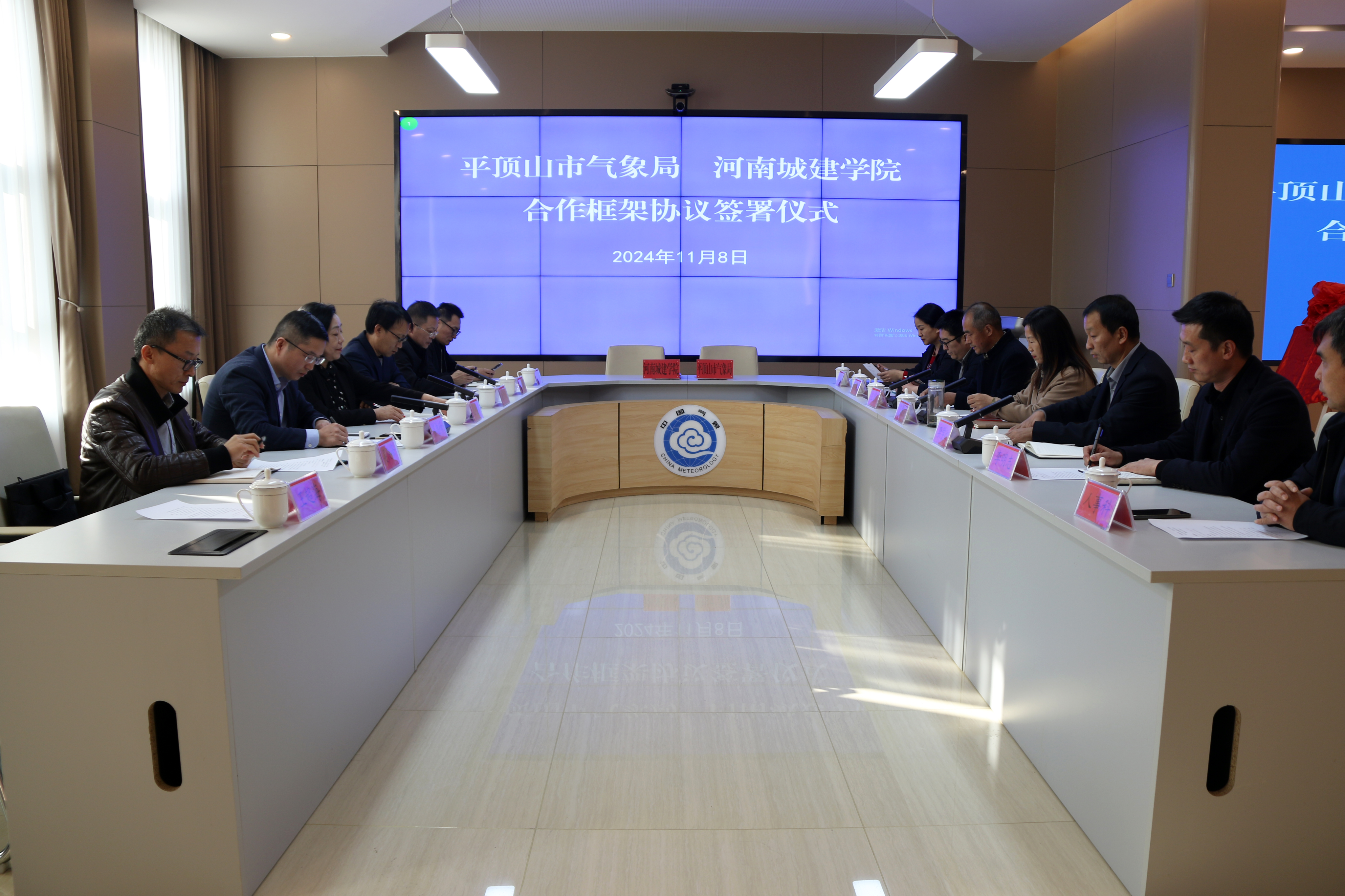 11月8日下午,我校与平顶山市气象局战略合作签约仪式在平顶山气象局举行。我校副校长毛艳丽,平顶山市气象局党组书记、局长孟丽丽出席鉴签并为实践教育基地揭牌。我校党委组织部、科研处、yl23411永利集团、生态环境治理研究院、测绘与城市空间信息学院等部门相关人员参加会议。