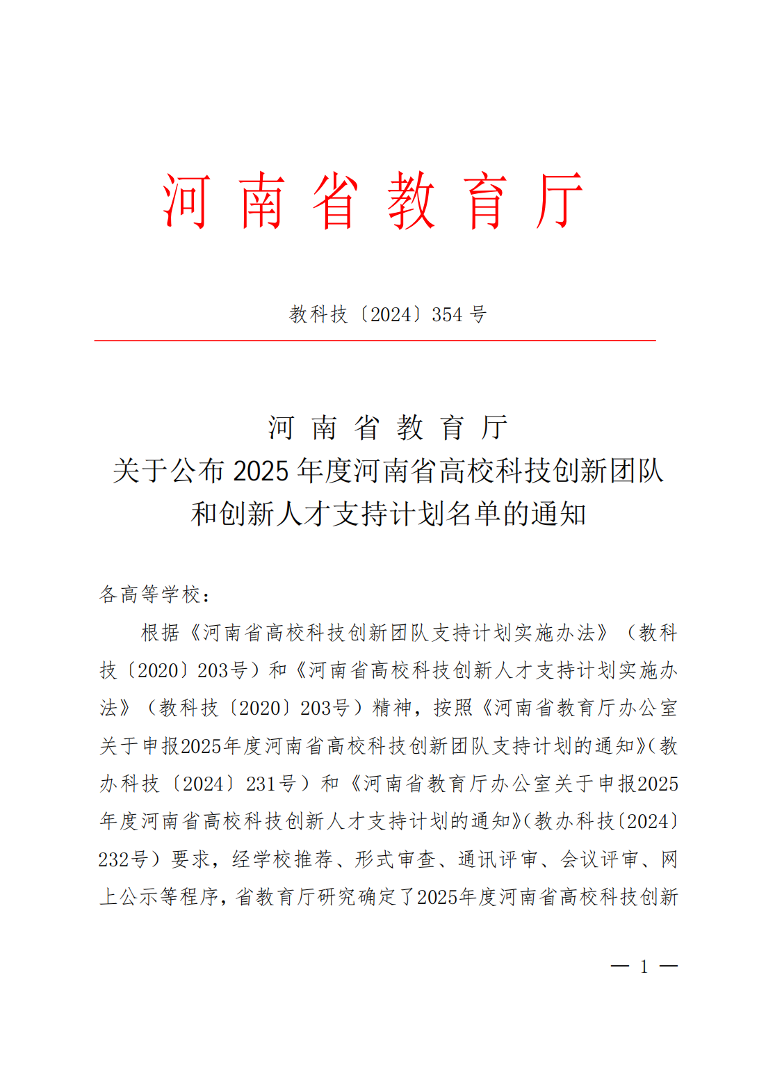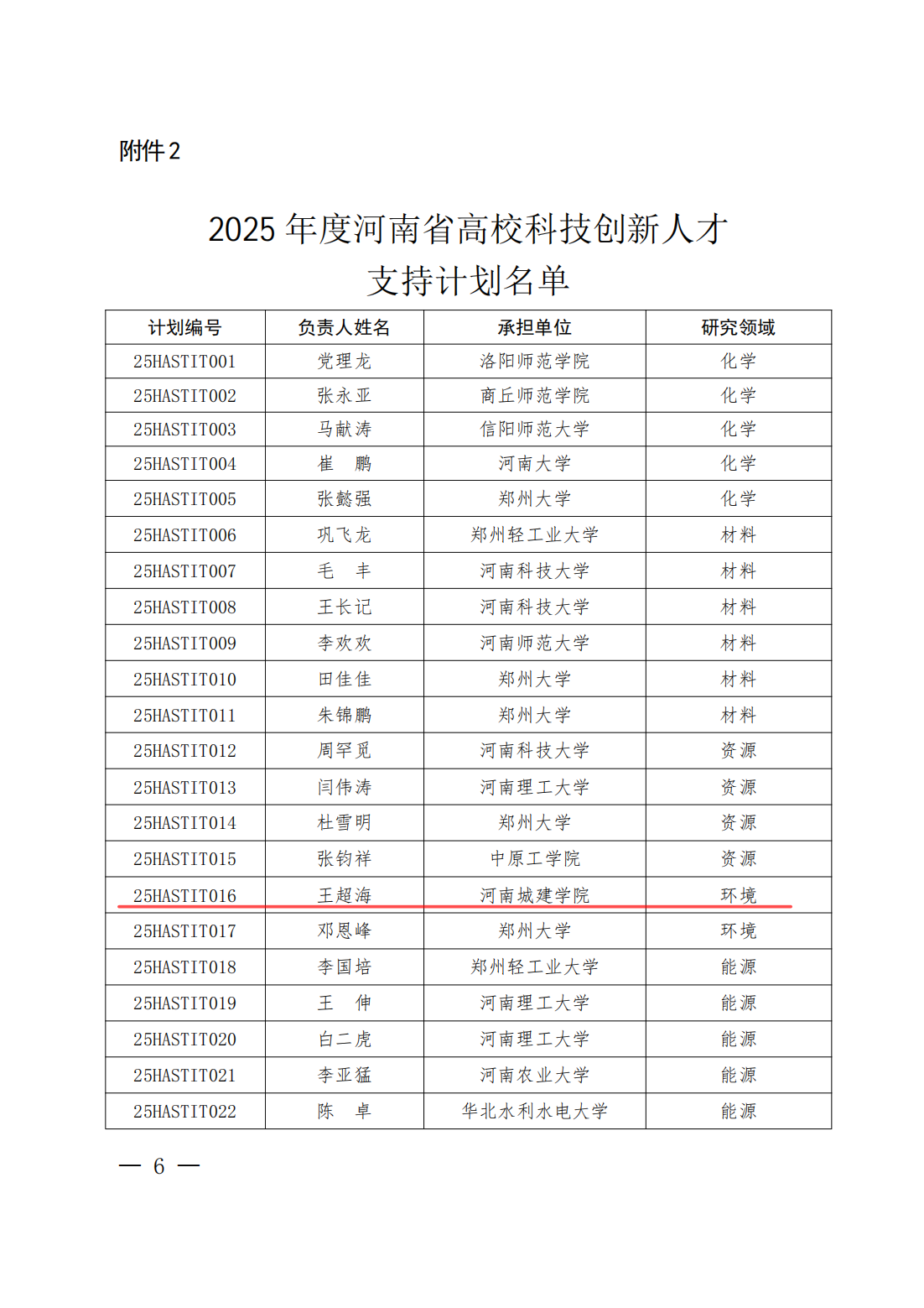 近日,河南省教育厅公布了2025年度河南省高校科技创新团队和创新人才支持计划名单(教科技〔2024〕354号文件),我院王超海老师获得2025年度河南省高校科技创新人才计划支持,支持科研经费额度30万元。