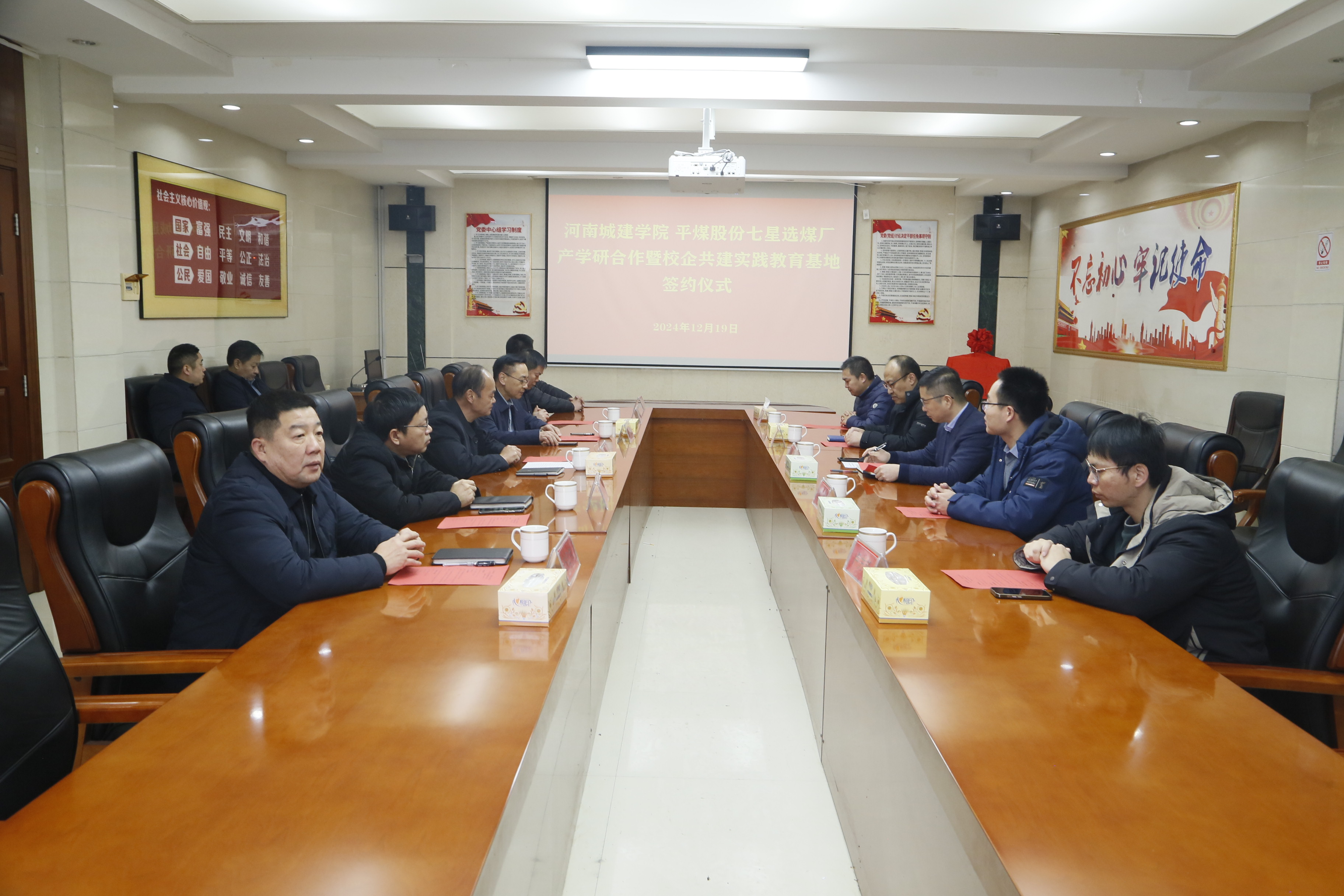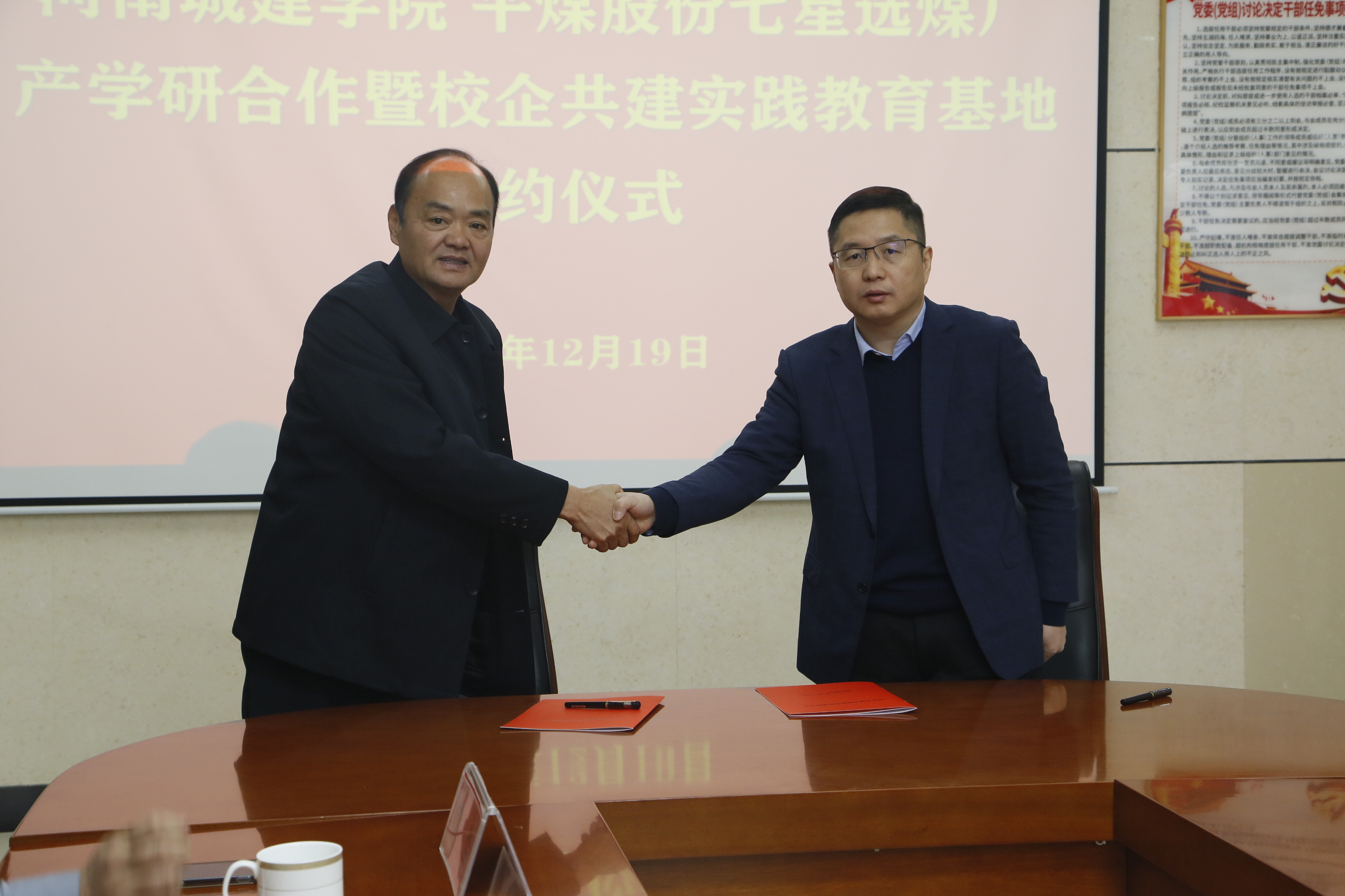 12月19日上午,我校与平煤股份七星选煤厂产学研合作暨校企共建实践教育基地签约仪式在平煤股份七星选煤厂三楼会议室举行。平煤股份七星选煤厂厂长王宏斌、yl23411永利集团院长姜忠峰代表双方签署协议并为校企共建实践教育基地揭牌。平煤股份七星选煤厂党委副书记、纪委书记尚光俊主持仪式。