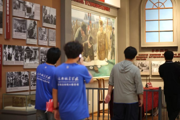 怀着崇敬之情,队员们走进八路军豫西抗日纪念馆。在这里,讲解员介绍着军民联防、抵御外敌的故事,与锈迹斑斑的步枪、补丁摞补丁的军装相互印证,勾勒出战争年代军民一心、共抗外敌的壮烈图景。这份跨越时空的坚韧与勇气,深深震撼着在场的每一个人;在中原英烈纪念馆,队员们在一张张纪实照片墙前久久伫立,沉浸式感受着英烈们的生平事迹,让英雄精神直抵心灵深处;在焦裕禄纪念园内,那件布满补丁的衣物、那把留有压痕的藤椅,更是将“亲民爱民、艰苦奋斗、科学求实、迎难而上、无私奉献”的焦裕禄精神,化作具象的时代回响......