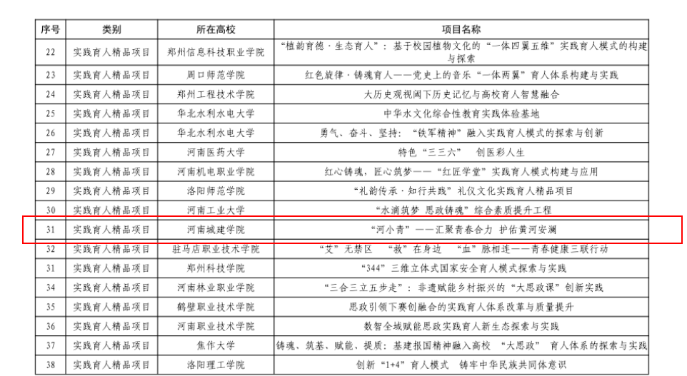 近日,中共河南省委教育工委、河南省教育厅公布2025年河南省高校思想政治工作质量提升综合改革与精品建设项目入选名单。我院项目《‘河小青’——汇聚青春合力,护佑黄河安澜》入选实践育人精品项目。