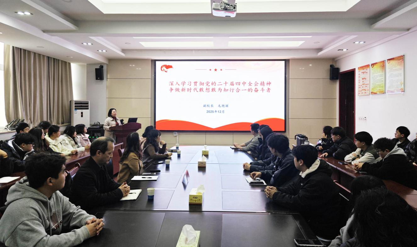 12月19日下午,副校长毛艳丽在9A315会议室以《深入学习贯彻党的二十届四中全会精神,争做新时代敢想敢为知行合一的奋斗者》为题,为yl23411永利集团、材料与化工学院全体研究生和教师代表讲授思想政治理论课。
