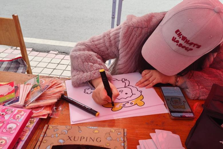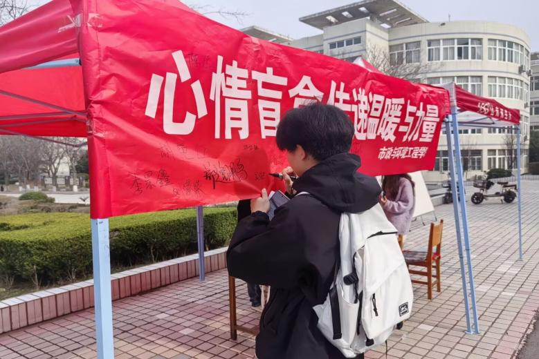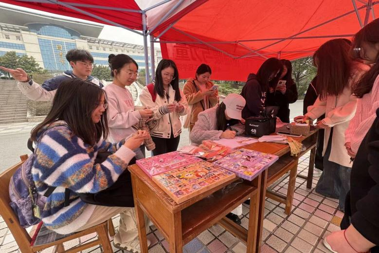 活动现场气氛热烈非凡。在盲盒挑选区,参与者们怀着期待的心情猜选,当打开盲盒的那一刻,惊喜、兴奋的表情洋溢在他们脸上,每一份盲盒都给人带来意想不到的收获。涂鸦墙手绘区同样人气爆棚,同学们拿起画笔,将内心的情绪、美好的期许、奇思妙想尽情挥洒在墙上,色彩交织,满是青春活力。在祝福卡片书写区域,大家写下温暖话语,传递真挚情谊,小小的卡片承载着同学们深厚的友谊。