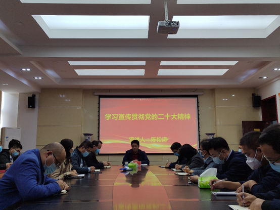 会上,陈松涛详细阐述了党的二十大主题、主要成果和重大意义,对党的二十大报告十五个部分内容进行了全面系统解读宣讲。陈松涛指出,党的二十大是在全党全国各族人民迈上全面建设社会主义现代化国家新征程、向第二个百年奋斗目标进军的关键时刻召开的一次十分重要的大会。这次大会明确宣示了我们党在新时代新征程上举什么旗、走什么路、以什么样的精神状态、朝着什么样的目标继续前进等重大问题,科学谋划了未来5年乃至更长时期党和国家事业发展的目标任务和大政方针,进一步指明了党和国家事业的前进方向,必将成为实现中华民族伟大复兴进程中的重要里程碑。
