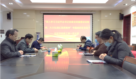 会上,支部书记姜忠峰领学了习近平总书记视察安阳的重要讲话精神,集体观看了专题片《根脉——红旗渠精神》。姜忠峰带头开展了批评和自我批评,与会党员逐一进行对照检查与深度剖析。陈松涛结合会议主题,开批评与自我批评,通过查摆突出问题,深刻剖析根源,明确整改措施。陈松涛指出,红旗渠精神与延安精神是一脉相承的,要深刻理解“自力更生、艰苦创业、团结协作、无私奉献”的红旗渠精神内含,自觉做到讲政治、讲情怀、讲奉献,要发扬党的艰苦奋斗优良作风,时刻准备好打硬仗、过紧日子。践行红旗渠精神要与树立正确的价值观相结合,与优秀传统文化相结合,奉献多一些,索取少一些,把个人的命运与中华民族的命运紧紧连接在一起,自觉把个人发展融入学校发展大局。要不断增强党支部的组织力、凝聚力、战斗力,更好发挥共产党员先锋模范作用,以高水平的党建促进高质量发展,聚焦学校“硕士学位授予单位建设”和“示范性应用技术类型本科高校建设”等中心工作,坚定信心,踔厉奋发,不断实现新突破、取得新成效。