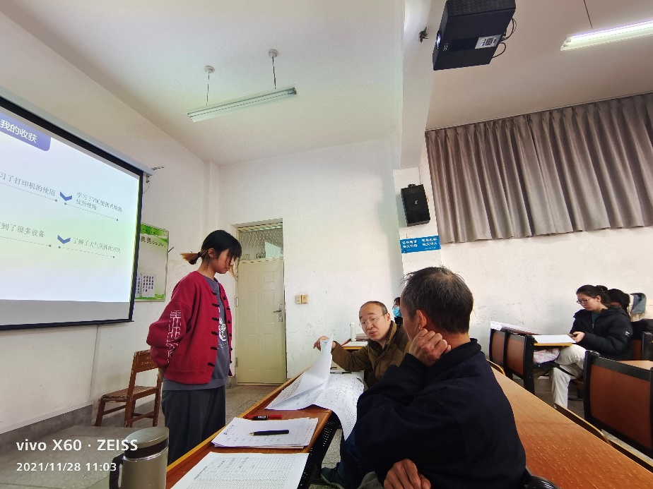 由于疫情形势严峻,结合学校疫情防控要求,本次实践环节检查答辩主要采用校内学生线下集中答辩、校外实习学生线上汇报答辩相结合的形式。在答辩过程中,各专业学生首先对前阶段实践环节开展情况、专业知识学习和技能锻炼等情况进行了汇报,分享了实践学习中的体会与感受,然后老师对学生的实践安排、学习内容、学习成果等进行了提问,对学生实践学习期间的表现进行了深入了解,指出了学生当前存在的问题,为其明确了改进和努力的方向,并对学生的疑惑进行了解答。