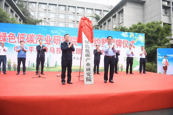 仪式上,我校校长范晓伟和中国平煤神马集团常务副总经理张建国为“绿色低碳产业研究院”揭牌。