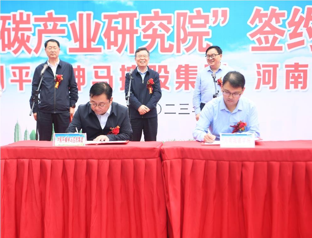 “绿色低碳产业研究院”是贯彻习近平生态文明思想,推动“双碳”工作的重要举措。研究院将围绕集团企业、平顶山市、河南省及国家重大科研需求,聚焦绿色低碳产业领域,致力于推动环保节能领域技术创新,共同建设分析测试中心、质量控制中心,共享科研基础设施,为特大型煤炭、化工、新能源新材料综合行业实现“双碳”目标贡献智慧,推进企业高质量发展和学校高质量学科建设。
