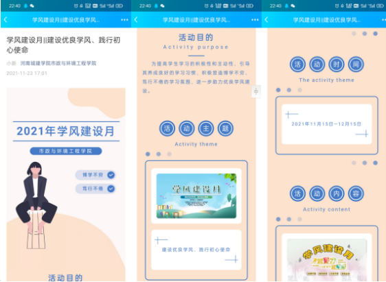 (通讯员:张轩轩)为提高学生学习的积极性和主动性,养成良好的学习习惯,积极营造博学不穷、笃行不倦的学习氛围,进一步助力优良学风建设,根据学校《关于开展2021年学风建设月活动的通知》要求,2021年11月15日—12月15日,我院开展了一系列学风建设月相关活动。