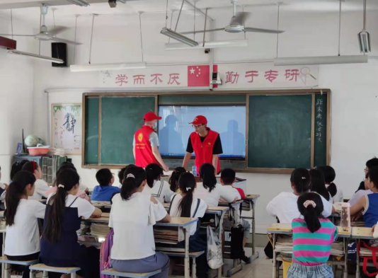 志愿者向小学生们介绍灭火器的分类和使用方法,紧急情况下正确处置方法,组织小学生进行火灾现场逃生演练;暑期来临,教育小学生们做到防溺水“六不一会”:不私自下水游泳、不擅自与他人结伴游泳、不在无家长或教师带领的情况下游泳、不到无安全设施、无救援人员的水域游泳、不到不熟悉的水域游泳、不熟悉水性的青少年不擅自下水施救,学会基本的自护、自救方法。