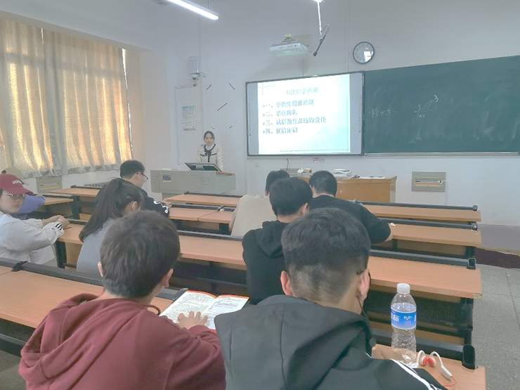 我院资助专员李颖老师为各位同学讲解了助学贷款的相关政策,介绍了提前还款的办理流程。同时对个人征信进行了详细的介绍,并结合还贷警示案例,深入讲解了遵守合同条约及诚信还贷的必要性。最后,结合毕业生助学贷款服务手册,对贷款常见问题进行了解答。