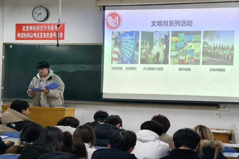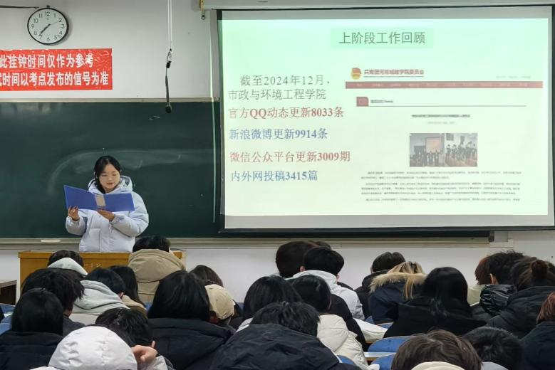 为贯彻落实高校学生会组织深化改革,健全和完善学生会管理,进一步加强学生干部队伍建设,提高学生干部的责任意识、服务意识、大局意识、创新意识,推动学生会工作科学化、规范化、精细化发展,我院于12月28日晚在9B406举行了2023-2024年度学生会述职大会,我院团学办全体老师、学生会全体成员出席本次大会。