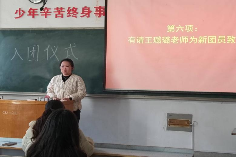 仪式在庄严的国歌声中拉开帷幕。主持人宣读了本次入团的新团员名单,王璐璐老师和曹玉婷老师为新团员们佩戴团徽,并对新团员的加入表示热烈祝贺,勉励大家要时刻牢记团员身份,坚定理想信念,努力学习,发挥先锋模范作用,团结同学,服务集体,为学校和社会的发展贡献青春力量。团员代表季佳琪带领全体新团员进行庄严的入团宣誓。最后,全体师生齐声高唱团歌《光荣啊,中国共青团》,仪式在嘹亮的团歌声中圆满结束。