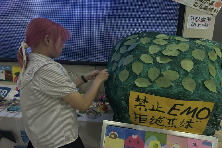 活动现场,一棵手工制作的大树被精心布置成“情绪树”,树上醒目的“禁止emo,拒绝焦虑”标签,吸引着过往毕业生的目光。我院为毕业生们发放了便利贴和笔,鼓励大家将内心的焦虑、迷茫、困惑,亦或是对未来的期许、对校园生活的不舍,都倾诉于纸上,然后粘贴在“情绪树”上。