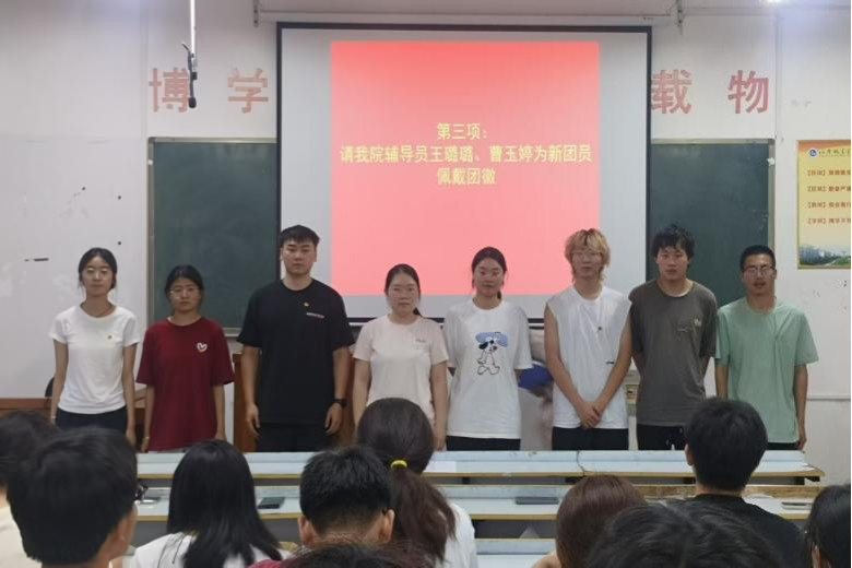 为深入贯彻党的青年工作方针,强化共青团组织凝聚力,传承五四精神、凝聚青春力量,激励新团员青年奋发作为,6月19日,我院在9A407教室庄重举行2025年上半年新团员入团仪式。学院团委副书记王璐璐、辅导员曹玉婷及全体新团员共同出席。