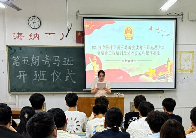 开班仪式上,王老师详细介绍了本期青马班的课程设置和考核要求,她提出,“青马工程”是引领青年思想,提升青年觉悟的重要阵地,希望学员们端正学习态度,严守纪律规范,做到学用结合、知行合一,在理论学习中筑牢信仰根基,在社会实践中锤炼过硬本领,努力成长为“政治过硬、德才兼备、堪当大任”的青年骨干。