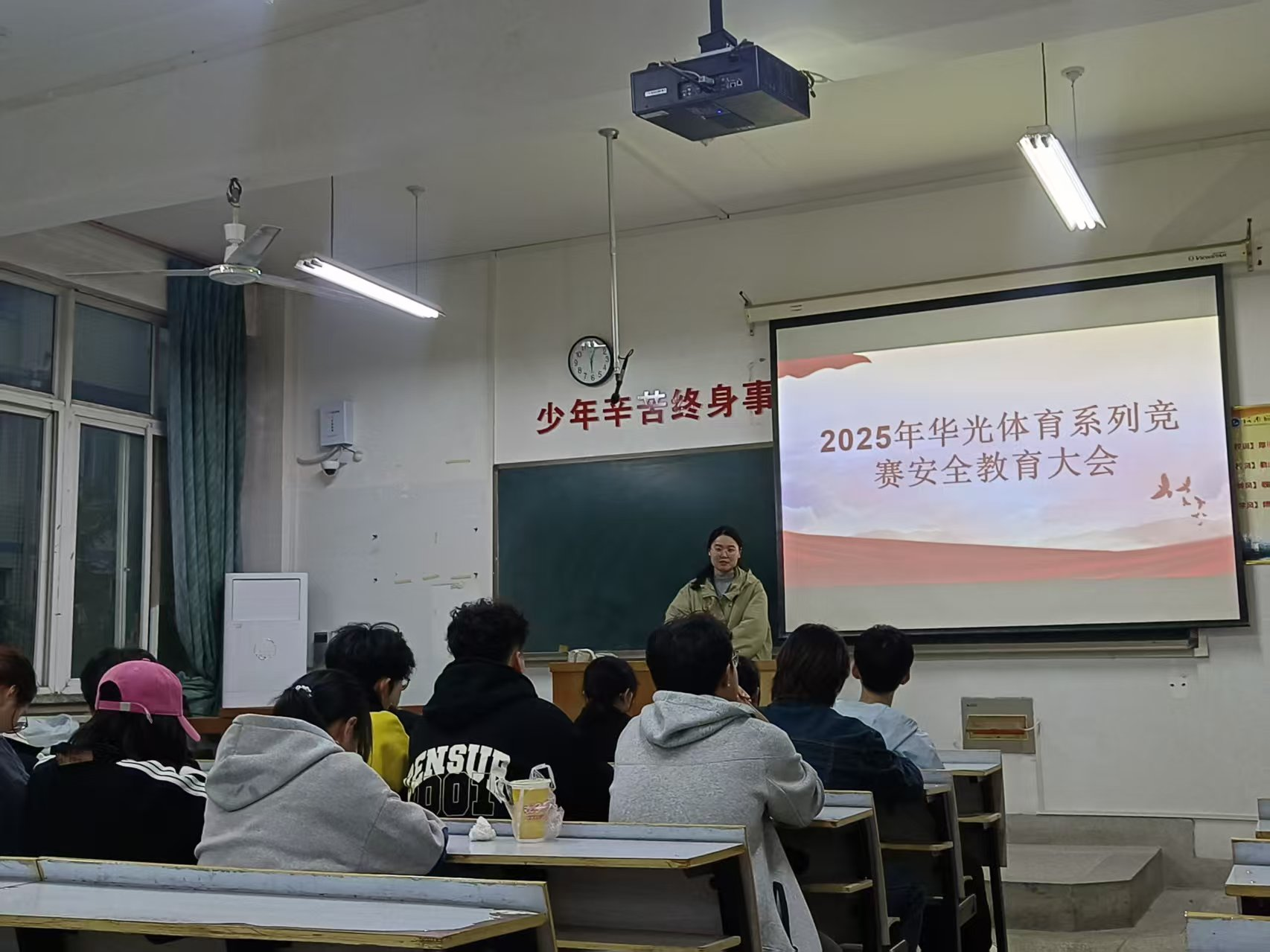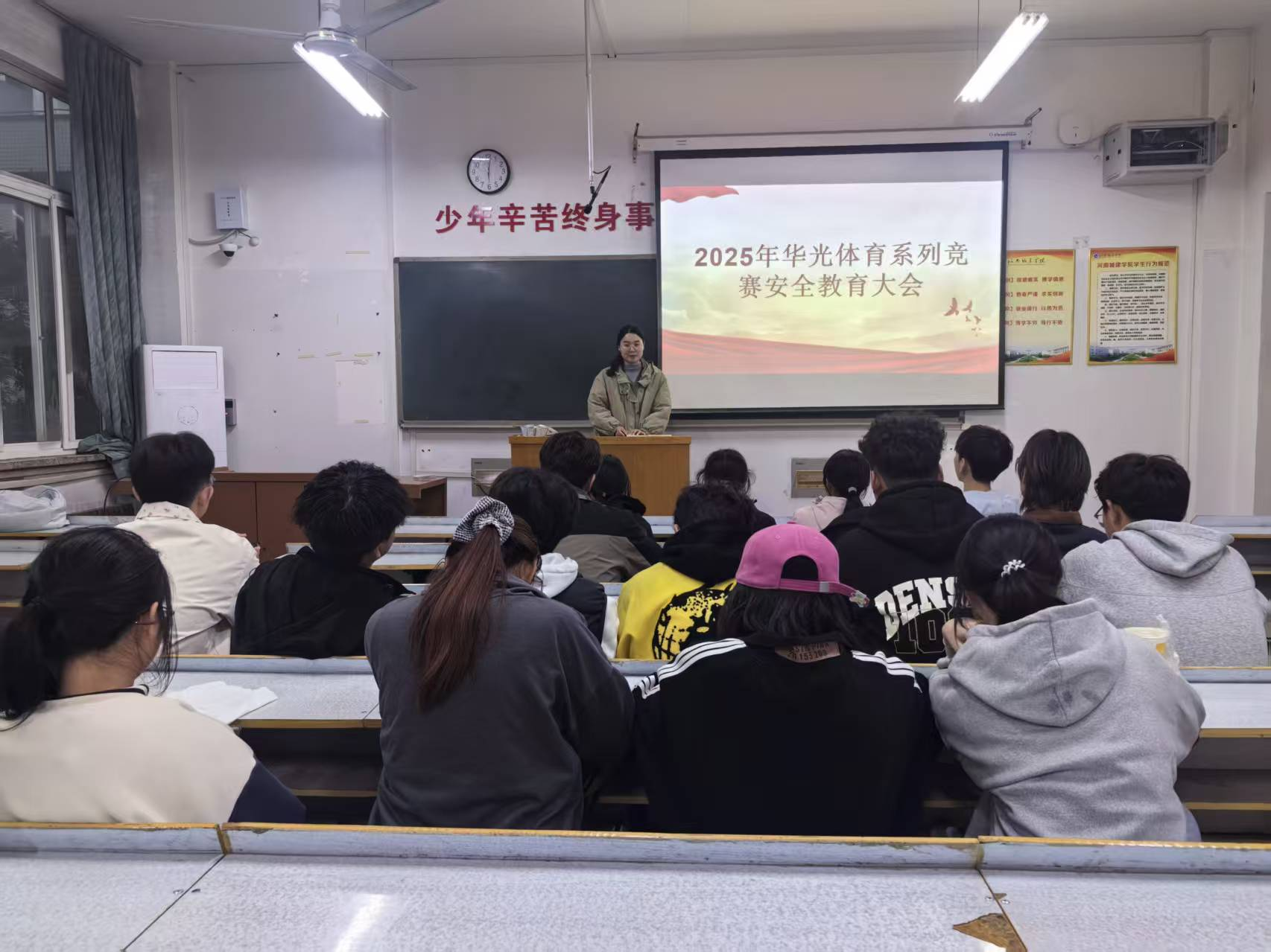 为更好迎接我校2025—2026学年第一学期“华光”体育活动的开展,保障训练和比赛期间各项工作的顺利展开,强化参赛学生的安全意识,10月17日,我院召开本学期华光体育赛事赛前安全教育大会。辅导员曹玉婷,全体参赛队员参与此次会议。